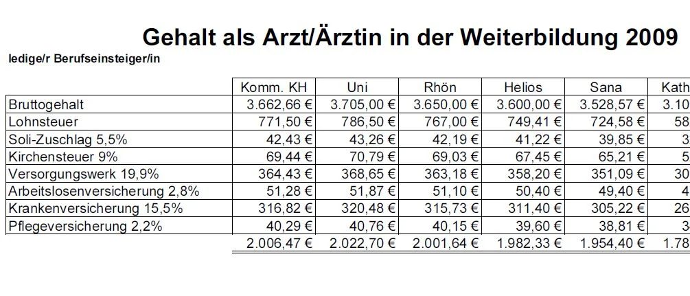 Hier die Einstiegsgehälter von Assistenzärzten in 2009: