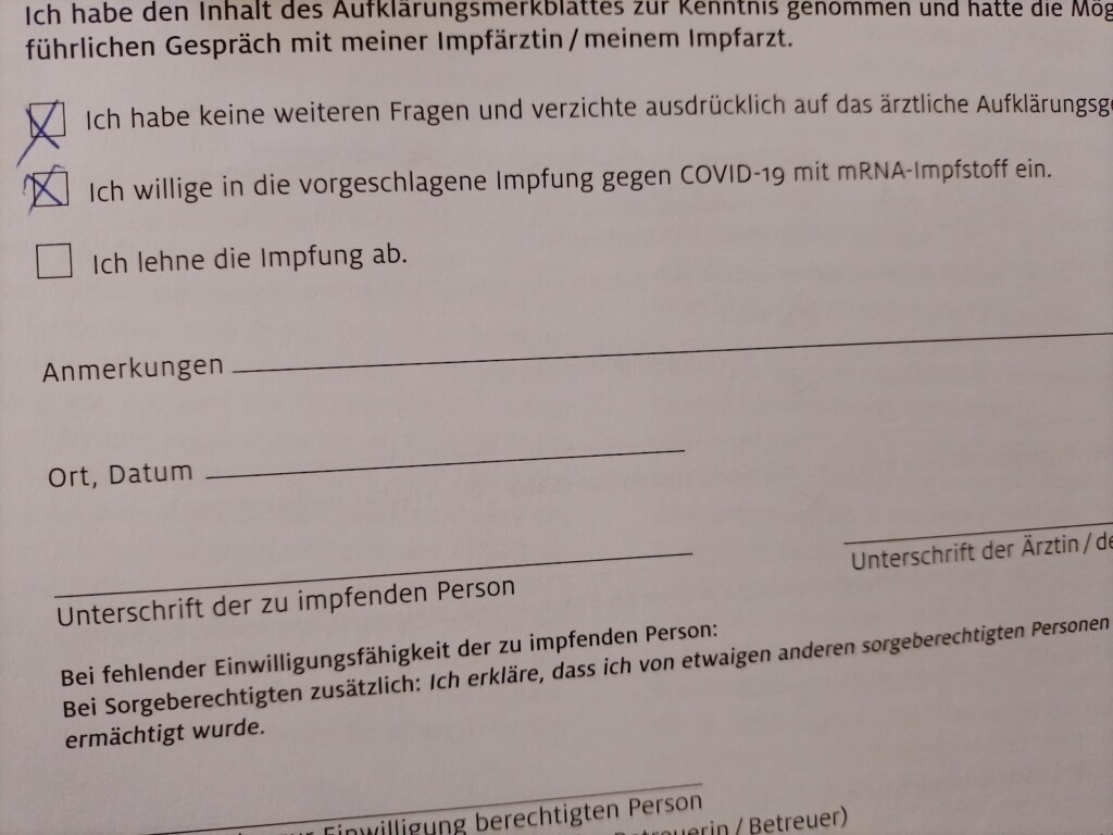 Später erfahre ich, dass es daran liegt, dass bei unter 30-Jährigen nur noch der mRNA-Impfstoff von BioNTech/Pfizer empfohlen wird. Grund dafür: besagte Altersgruppe scheint nach einer Impfung mit Moderna ein höheres Risiko für eine Myokarditis zu haben, als nach Impfung mit dem Impfstoff von Biontech.