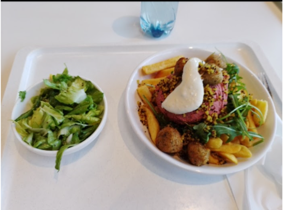 Zu guter Letzt befindet sich die Mensa in regelmäßigem Austausch mit der Nachhaltigen Mensa AG, die sich dafür einsetzt mehr regionales und saisonales Essen, sowie pflanzliche Alternativen anzubieten.