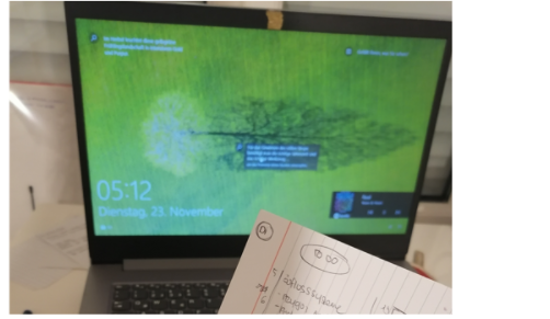 Mal wieder verwerfe ich meine Lernstrategie, bin aber nicht gewillt, gänzlich aufzugeben. Noch ist es nicht zu spät, denke ich mir oft. Ich schaffe es zunächst mehr oder weniger die Nerven zu behalten.