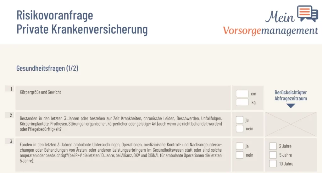 Eine weitere Hürde, die oftmals unterschätzt wird, ist die Gesundheitsprüfung. Denn ähnlich wie beim Abschluss einer Berufsunfähigkeitsversicherung für Ärzte gibt es vor dem Eintritt in die PKV eine Reihe von Gesundheitsfragen zu beantworten.